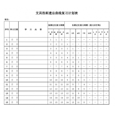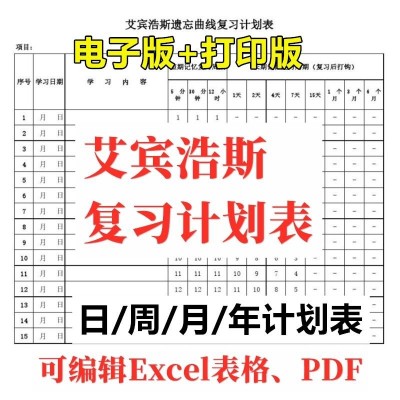 可编辑艾宾浩斯复习计划表pdf记忆法艾宾浩斯遗忘曲线电子版excel