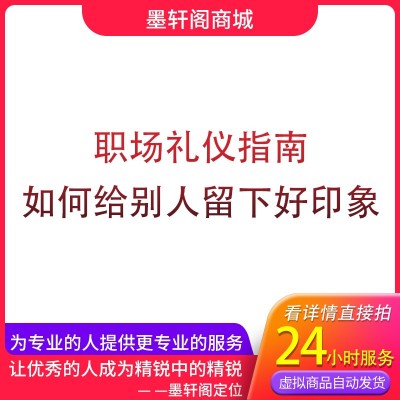 首页 > 虚拟产品 > 资源教程 > 职场礼仪指南,如何给别人留下好印象【视频课程+pdf电子书】